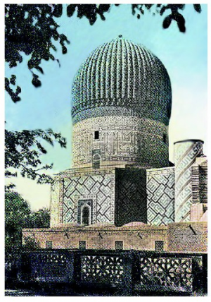 Күмбөздөрдүн (XII кылым) кирпичтери оймо-чиймеленип, көркөм кыналып жана оюу түшүрүлгөн, сары-кызыл чопо менен кооздолгон; «ислими» аттуу өтө кооз өсүмдүк арабескасы, «куфи» жана «насх» жазуулары, өсүмдүктөрдүн, жылдыздардын каршы-терши оймо-чиймелери, чегилген сызыктардын татаал айкалыштары жана кирпичтен кыналган геометриялык оюулар – «гирихтер» кооздугу жана жасалгасынын чебердиги менен көз жоосун алат. Кыргызстандын Каракоюн суусунун жээгинде, Ат-Башыдан 80 км аралыкта Жети-Суу менен Кашкарды байланыштырган байыркы кербен жолунда жергиликтүү башкаруучу Мухамед хан